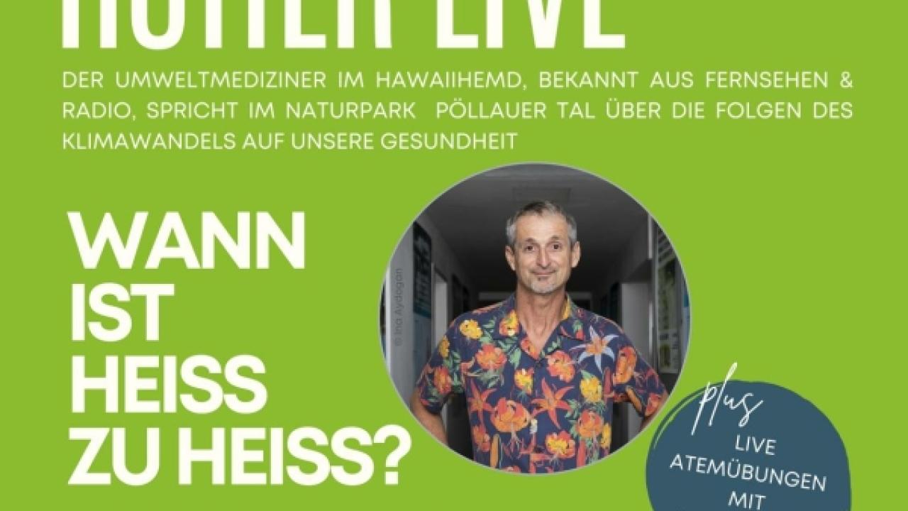 Der berühmte Umweltmediziner, bekannt aus TV und Radio, wird mit uns live in Pöllau die Frage "Wann ist HEISS zu HEISS?" erörtern! Zusätzlich wird der Dipl. Atemtrainer und staatl. geprüfte Instruktor Tom Holzer mit uns davor in die Welt der richtigen Atmung eintauchen!