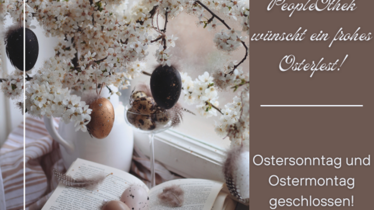 März, 2024 Frohe Ostern! Das Team der PeopleOthek wünscht allen ein frohes und entspanntes Osterfest! Wir sind am Mittwoch 03.04. wieder für euch da und haben Neuigkeiten im Gepäck! Seid gespannt! :)
